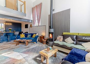 A log burner creates cosy evenings while the king-size bedroom features luxury bedding.