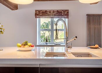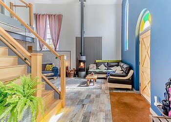 - Wood-burning stove and stained-glass windows